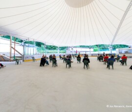 Auch in Corona-Zeiten ist das Green Events-Team wieder unterwegs, um interessierten Veranstaltern das Projekt vorzustellen. Um die nötigen Distanzen einhalten zu können, fand die Veranstaltung diesmal an einem außergewöhnlichen Ort statt: auf der Beforter Eisbahn, die zurzeit ohne Eisschicht als Veranstaltungsort fungiert.