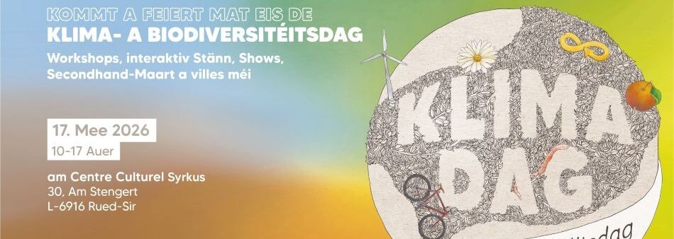 Besuchen Sie den Stand des Oekozenter Pafendall mit der Vorstellung der Projekte Oekotopten.lu und „Smart Youth – Smart Choice“ am 17. Mai 2026 bei der 4. Ausgabe des Klima- und Biodiversitätstags in Roodt/Syr im Kulturzentrum Syrkus.