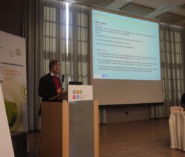 Über die Notwendigkeit nationaler Aktionspläne und eines nachhaltigen Pflanzenschutzes aus Umweltsicht referierte Dr. Tobias Frische, Ökotoxikologe des Umweltbundesamts. Das Programm für einen nachhaltigen Pflanzenschutz, das Dr. Frische vorstellte, beinhaltete folgende 5 Punkte: